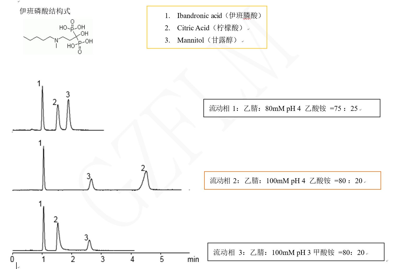 【菲羅門Comix色譜柱】伊班磷酸, 檸檬酸與甘露醇的液相分析