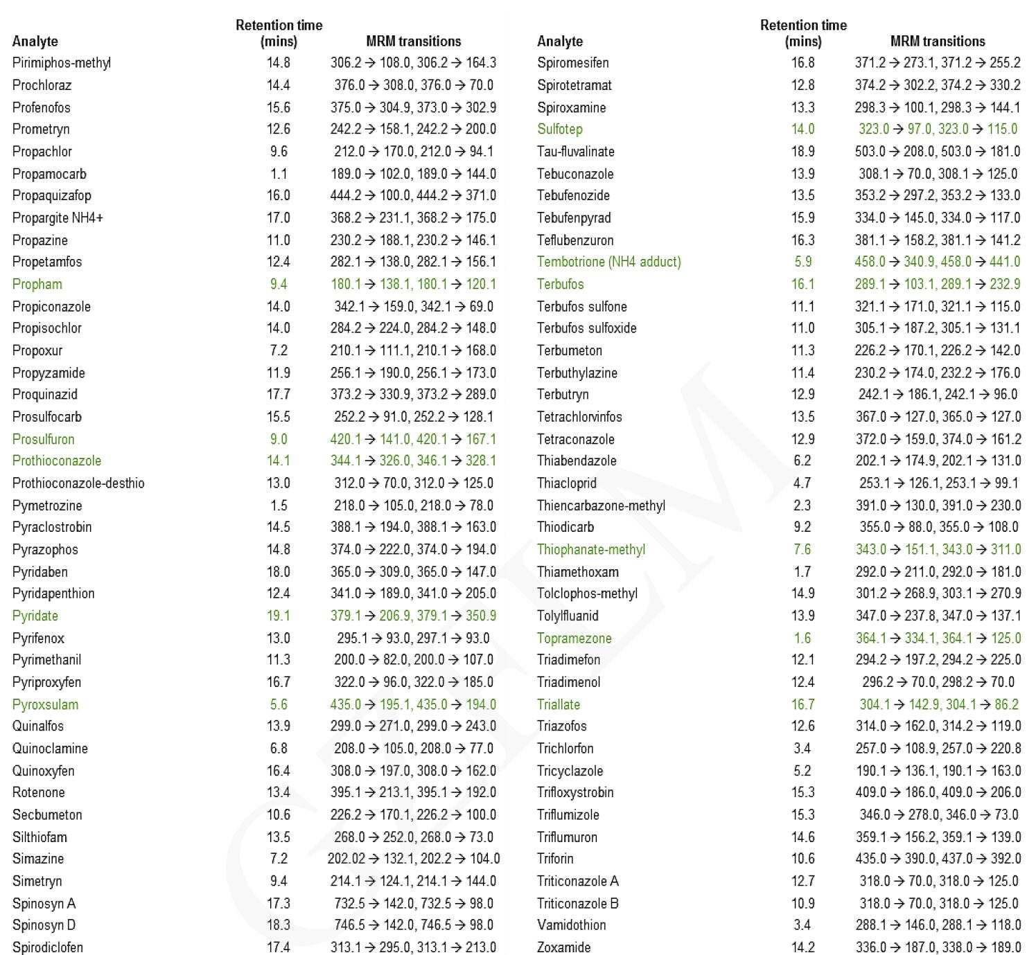 300 種農藥的 LC-MS-MS 方法