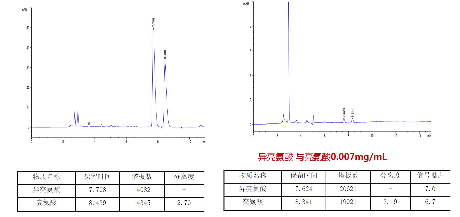 SuperLu C18 AQ對異亮氨酸與亮氨酸的分析UV檢測器