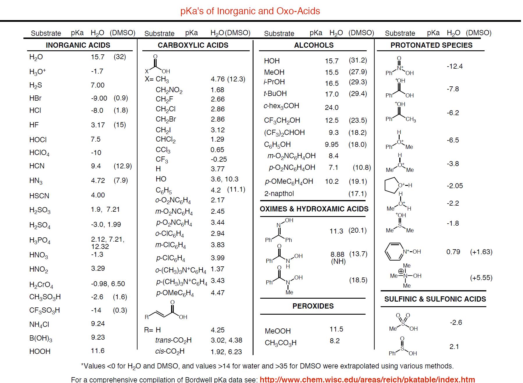 本文推薦哈佛大學 David Evans制作的化合物的pKa表, 包括以下化合物的pKa。