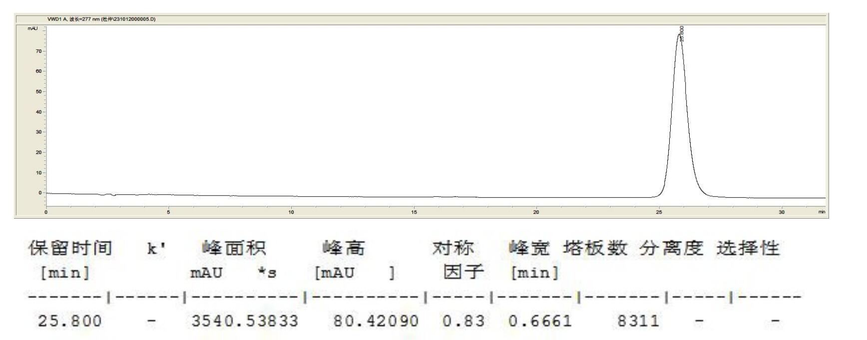檢測器:UV 277nm