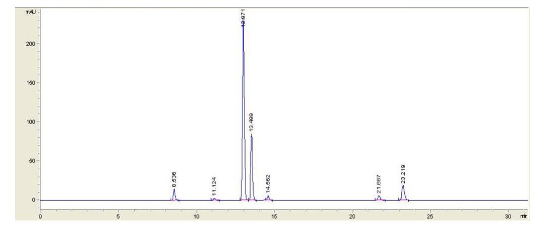 色譜柱:菲羅門 SuperLu C18(2) 5u 250*4.6mm(貨號(hào):FMG-5292-EONU) 流動(dòng)相:A:20 mmol/L 乙酸銨溶液 B:甲醇