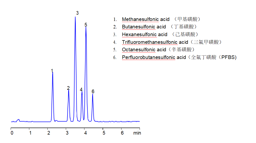 App ID: FLM-C240014 Comixsil HAX 與 ACRP 液相法分析烷基磺酸與氟化烷基磺酸(此法適合ELSD CAD MS 檢測器)