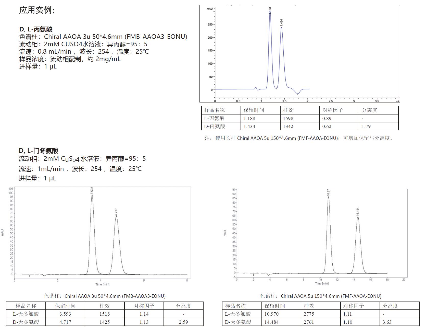 - Chiral AAOA 氨基酸與有機(jī)酸手性柱 Chiral AAOA手性柱是以高純度具有良好機(jī)械穩(wěn)定性的硅膠為基質(zhì),通過新型工藝鍵合D-青霉胺于十八烷基柱上而成的配體交換型手性柱。