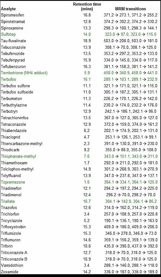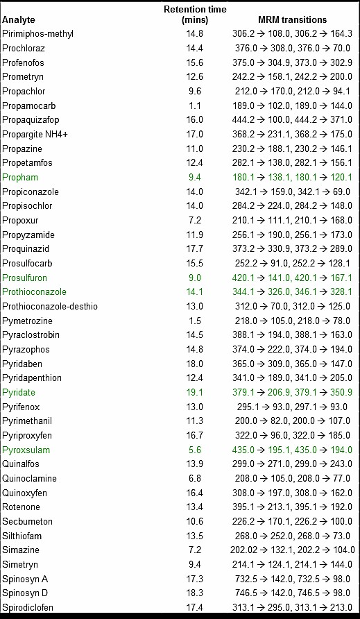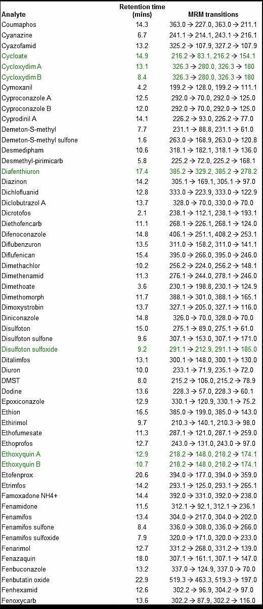 300種農(nóng)藥的LC-MS-MS方法
