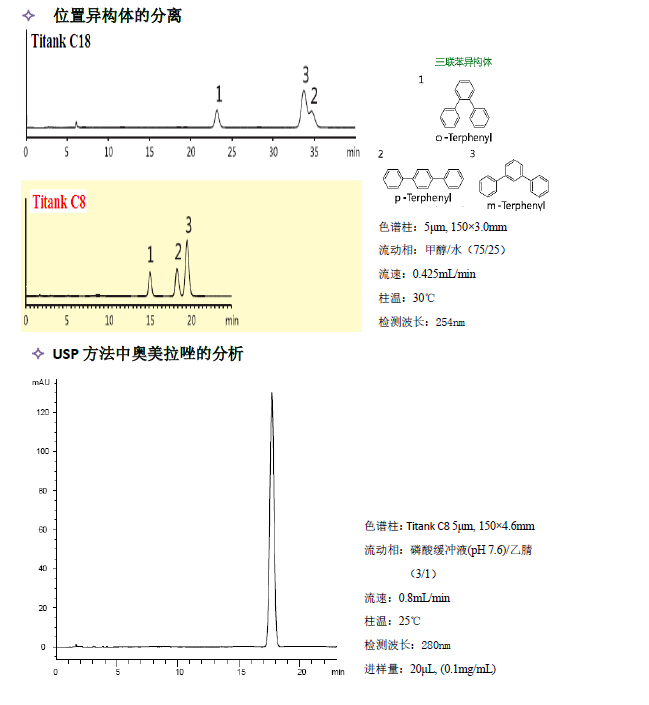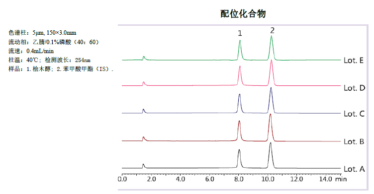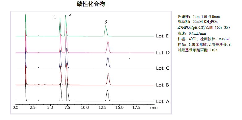 上圖顯示,對(duì)易于引起吸附、拖尾及易產(chǎn)生再現(xiàn)性問(wèn)題的堿性化合物和配位化合物,Titank 系列能獲得穩(wěn)定的重現(xiàn)性。