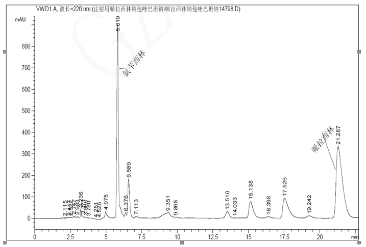 注射用哌拉西林鈉他唑巴坦鈉(4:1)有關物質檢驗方法